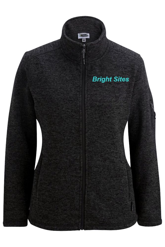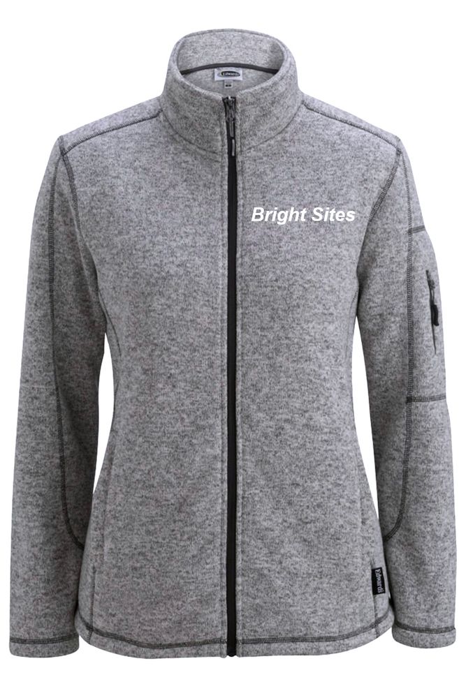 • Edwards Our ladies' sweater knit fleece jacket is warm; comfortable and comes in 3 colors. Companion style is #3460 • 100% Polyester; 10.4 oz. • Traditional fit • Soft fleece fibers trap and hold natural body heat • Two zippered side pockets; straight hemmed bottom • Left bicep pocket • Easy care; home launder • Ladies' Sizes: XS - 4XL